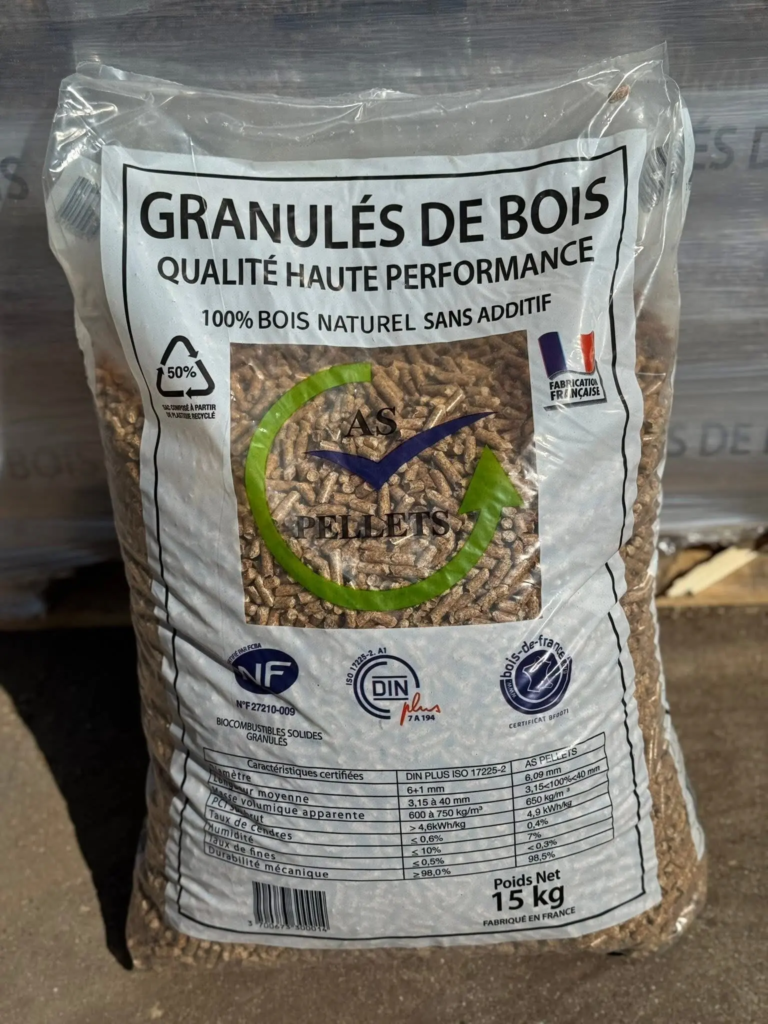 Nous vous fournissons des granulés « DINplus » ou « NF » en sacs de 15 kg.